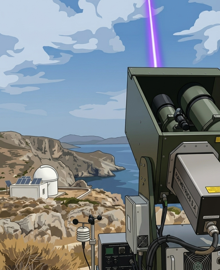 Developed by the National Observatory of Athens (NOA) and Raymetrics S.A., the High Power UV Lidar will be installed at the PANhellenic GEophysical observatory of Antikythera (PANGEA). It features a high-power polarized laser (355nm), two telescopes for near and far-field measurements, and is optimized for day and night operation. The lidar will measure temperature, water vapor, and aerosol properties, including extinction coefficients, backscatter, and depolarization ratios, with high spatio-temporal resolution. It will also include a multispectral detector for fluorescence spectra and Raman scattering measurements, targeting gases like O₂ and CH₄, and detecting biogenic particles such as pollen, viruses, and bacteria.